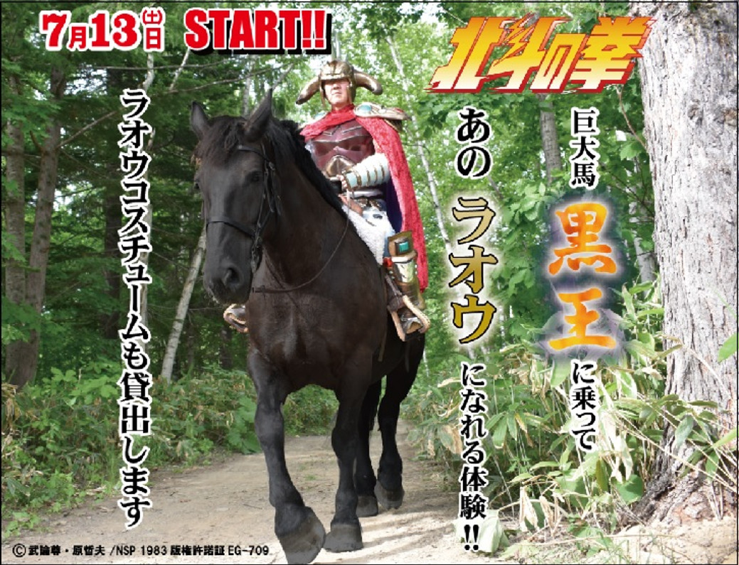North Safari Sapporo (Sapporo, Hokkaido), a hands-on zoo, will start on July 13 and it will be a service that will make it possible for customers wearing costumes to become Raoh. There is also a horseback riding experience.